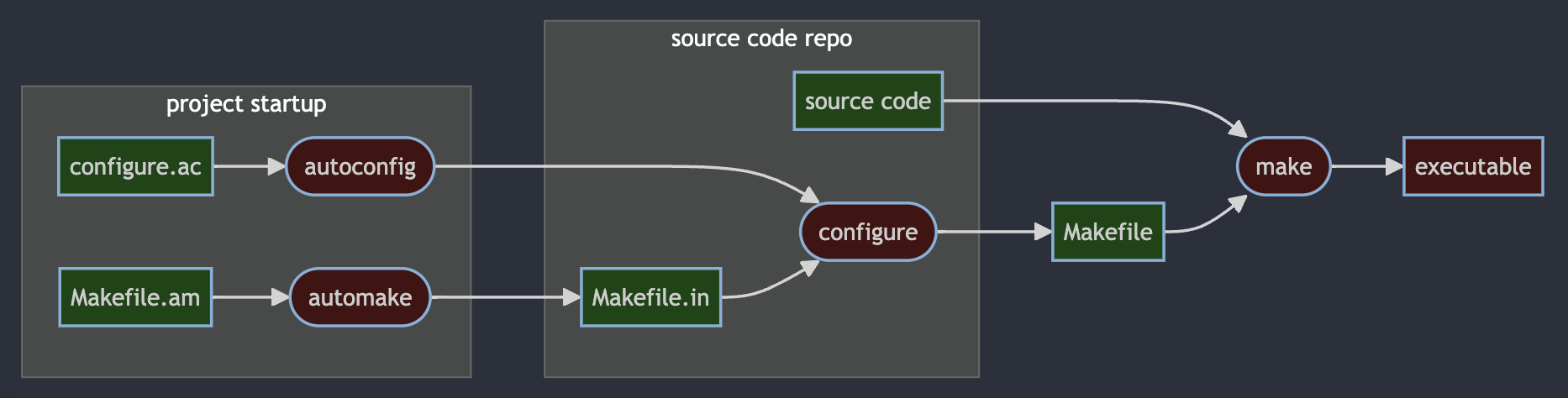 d[configure.ac] --> e([autoconfig]) --> f([configure])